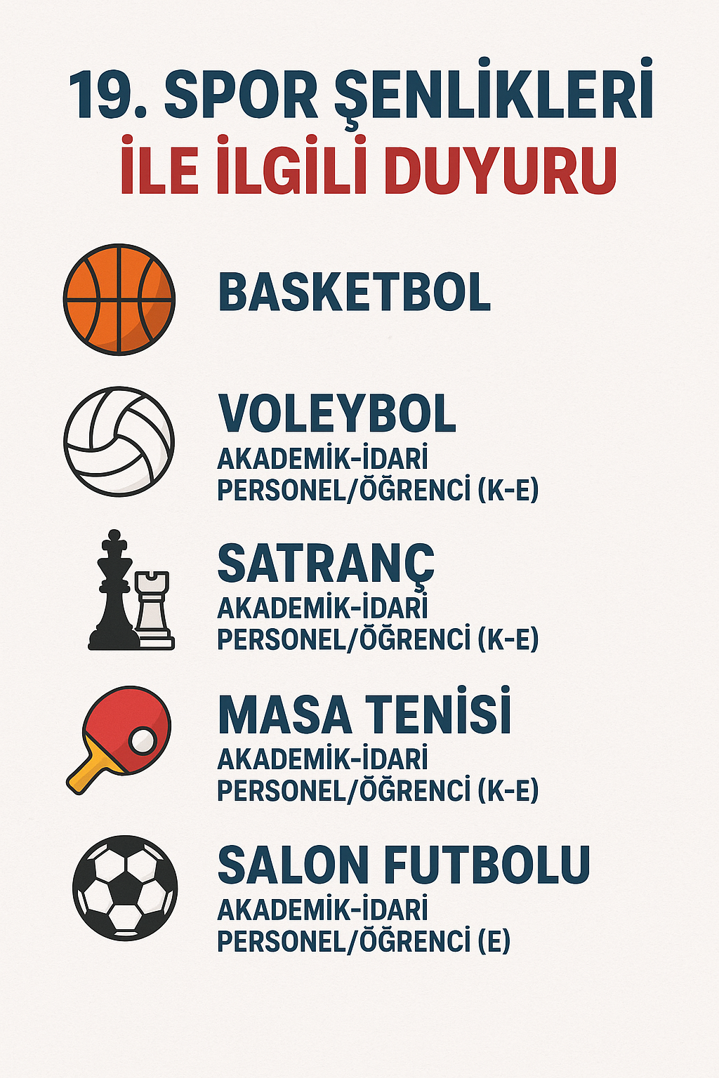 2025-2026 Eğitim Öğretim Yılı Bahar Yarıyılında düzenlenecek olan 19. Spor Şenlikleri;