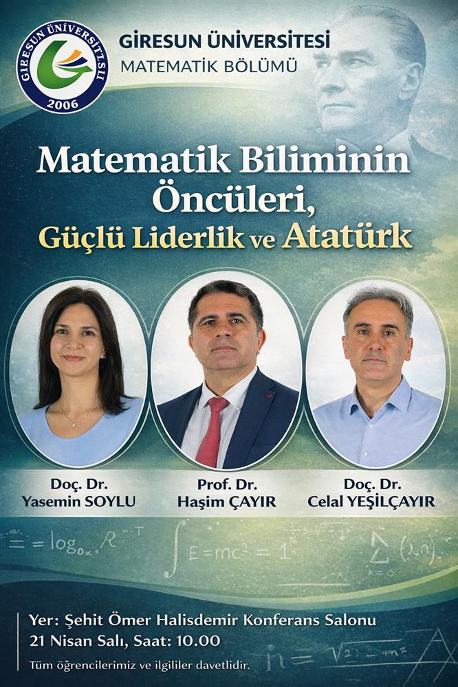 Fakültemiz Matematik Bölümü tarafından düzenlenen “Matematik Biliminin Öncüleri, Güçlü Liderlik ve Atatürk” başlıklı etkinlik, akademik ve kültürel içeriğiyle dikkat çekiyor.